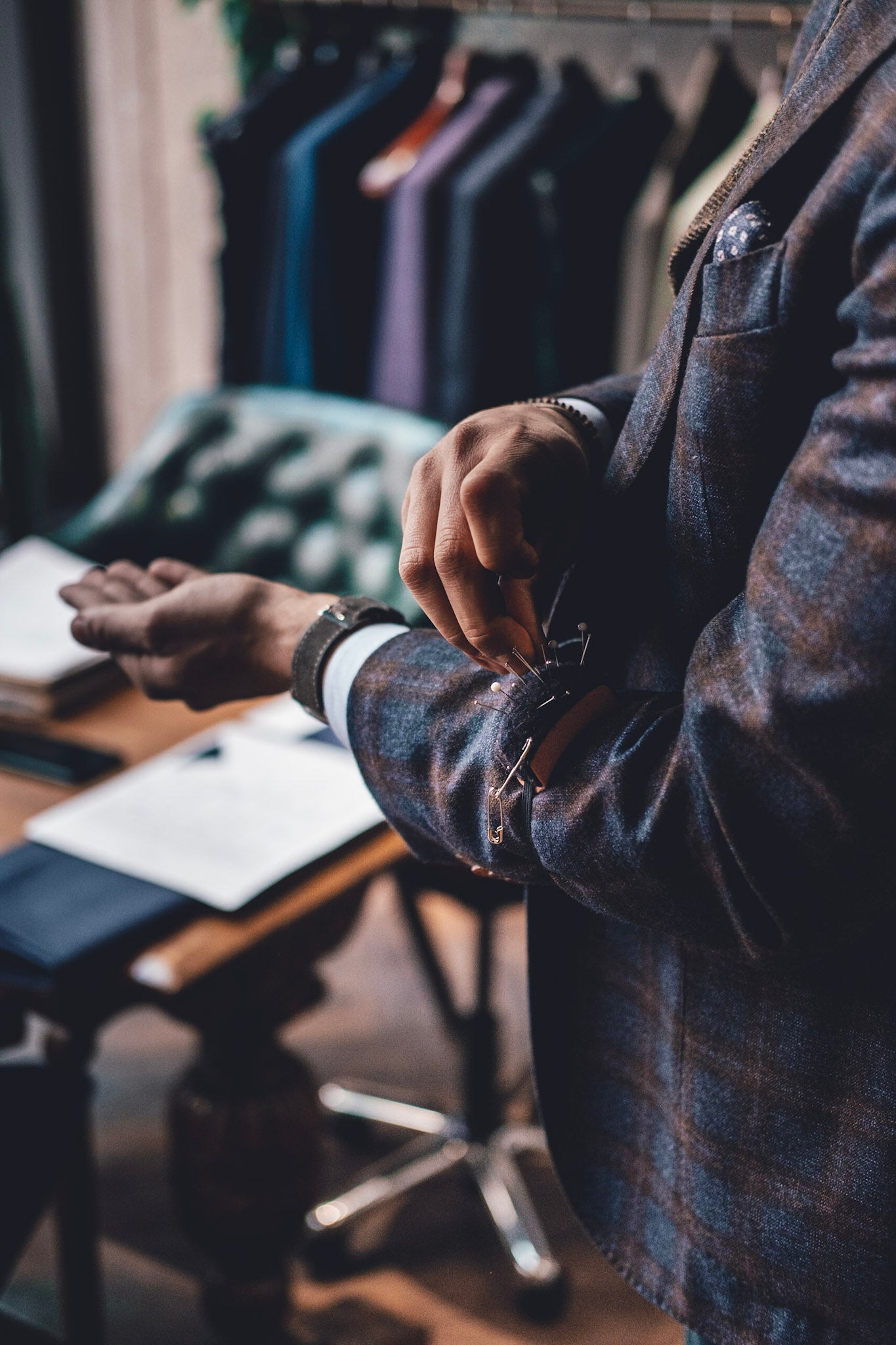 Alright, you've booked your appointment: now what? Come on in, pull up a seat. We'll pour you something to drink, and get to work designing your new piece. Be it made-to-measure, or semi-bespoke, you'll pick all the details, and then we'll measure you up for your perfect fit. For payment, we take a half deposit when you place your order, and you can pay us the balance when you pick up at the end of the process!